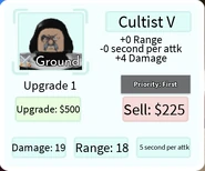 Cultist V is a 4-star ground and single target type unit based on a cultist from Magi: The Labyrinth of Magic . He can be obtained by earning him from any Story Mode mission in Magic City , evolving Cultist IV , or by pulling him from the Gold Summon .