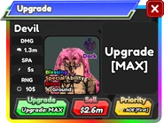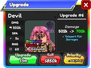 Upon activation, the Devil's ability can halt enemies for varying lengths of time. Initially, it stops enemies within range for 6.5 seconds, with a 30-second cooldown. The 5th upgrade, Ultimate Timestop II, freezes all enemies on the map for 30 seconds, with a 500-second cooldown. The duration can extend to 60 seconds, contingent on the Ultimate Timestop unit.