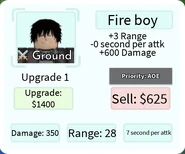 Fire boy is a 5-star ground and AoE (Full) type unit based off the character Shinra Kusakabe from the anime Fire Force . He can only be obtained from the Hero Summon and does not take part of any evolution.