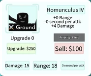 Homunculus IV is a 4-star ground and single target type unit based on the Homunculus from the Fullmetal Alchemist anime. He can be obtained by earning him from any Story Mode mission in Secret Lab, evolving Homunculus III, or by pulling him from the Gold Summon.
