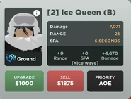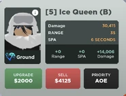 Ice Queen (B) is a 6-star ground and AoE (Full) type unit based on Rukia Kuchiki while using her Bankai, from the anime Bleach . Ice Queen (B) freezes enemies she attacks and has her own unit-exclusive orb called the Snow Orb. She was buffed to deal more damage with Update 25 (Sep. 2022).