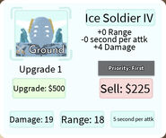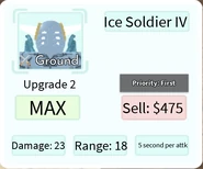 Ice Soldier IV is a 4-star ground and single target type unit based on the Ice Soldiers from the Sword Art Online anime. He can be obtained by earning him from any Story Mode mission in Dungeon, evolving Ice Soldier III or by pulling him from the Gold Summon.