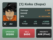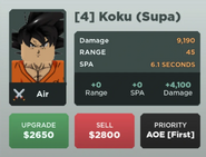 In ASTD, Koku (Supa) is a 5-star unit derived from Goku of Dragon Ball Super, obtainable through Hero Summon from Banner Y and Z, and capable of evolving into Aqua Koku. Super Koku, another variant, is a 4-star unit based on Super Saiyan Goku, capable of further evolution into Super Saiyan 3 Goku. Both Koku versions serve as fusion units.