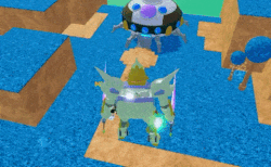 Riding the mech spawned by Meta-Knight requires holding the E key on PC, pressing the card above the mech on mobile, or the Y button on Xbox. Inside the mech, players can attack air and ground units, and manage other units. First-person view is blocked by the mech's parts. Attacking is only possible in Mech Form.