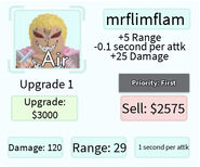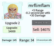 Mrflimflam is a 5-star unit inspired by Donquixote Doflamingo from One Piece. He's obtainable by completing Trial 3 in either normal or extreme mode. Mrflimflam can evolve into Flimflam (Overheated) with the help of specific units, including 3x Mrflimflam, 1x Dr. Heart, 1x Ruffy (4th Form), and 1x Announcer. This character was first available in update 4 and was limited to a single acquisition until April 21, 2021.