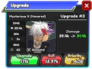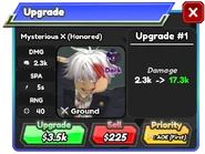 Mysterious X (Honored) is a 5-star unit based on Satoru Gojo during the Hidden Inventory arc from the Jujutsu Kaisen franchise. He can be obtained via the Special Summons .