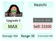 Nezichi is missing animations on all attacks, as originally this character was shown to have a attack with an explosion effect not unlike other explosive units around the time period. however, for an unknown reason,this was removed around the same time all the units recieved copyright free names.
