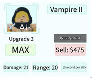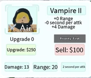 Vampire II is a 3-star hill and single target type unit based on a vampire from JoJo’s Bizarre Adventure. It can be obtained from the Gold Summon, by evolving Vampire, or by winning any Story Mode mission in Vampire Hideout.