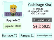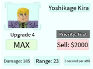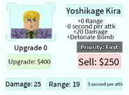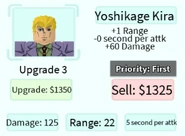 Yoshaga Kiryu, a 5-star ground and single target type unit, is based on Yoshikage Kira from JoJo's Bizarre Adventure. Players can acquire him by successfully completing Trial 2 in Normal or Extreme mode. His unique ability, Detonate Bomb, is manually activated.