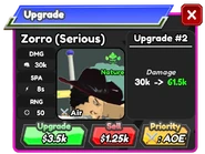On Update 29, Zorro (Serious)'s total damage and total upgrade costs were cut in half.